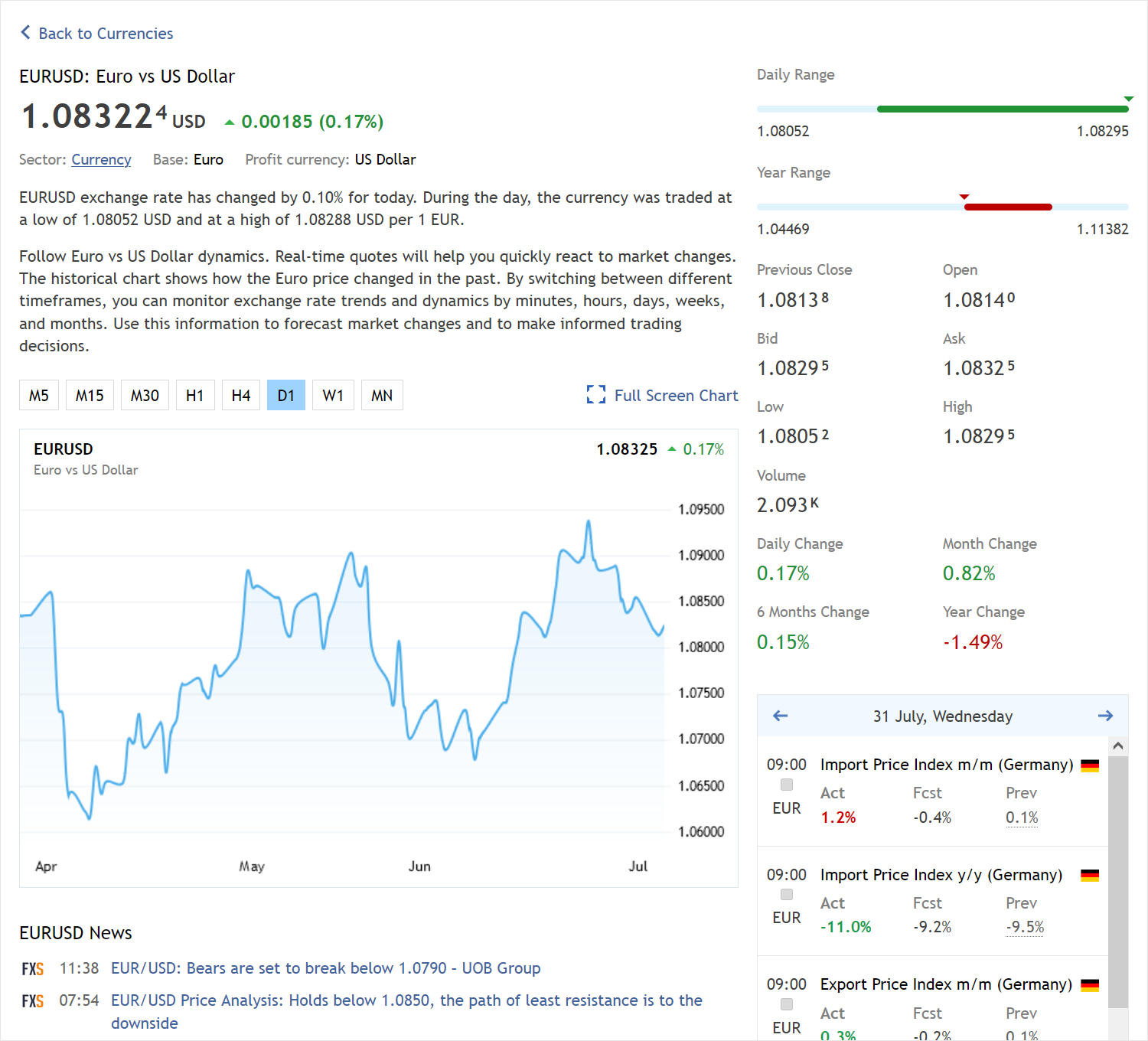 使用报价版块了解市场变化。有关金融工具的详细信息和交互式图表将有助于做出准确的交易决策。
